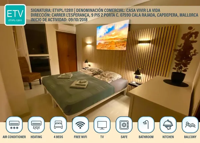 Appartement Casa Vivir La Vida à Cala Ratjada de 70 m² est situé à moins de 5 minutes de marche de M Bike et offre le Wi-Fi pour les affaires ou les loisirs. La résidence spacieuse se trouve également à 450 mètres de Segpark Cala Ratjada et à 2 km du Château de Capdepera.